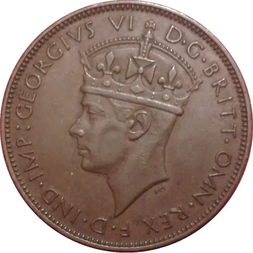 | Leyenda del anverso | GEORGIVS VI D·G·BRITT·OMN·REX F·D·IND·IMP: PM (Translation: GEORGIVS VI DEI GRATIA BRITANNIARUM OMNIUM REX FIDEI DEFENSOR INDIAE IMPERATOR George the Sixth by the Grace of God King of all the Britons Defender of the Faith Emperor of India PM) |