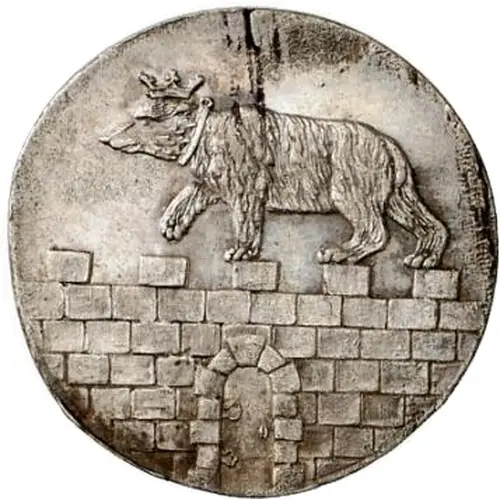 | Obverse description | Crowned bear walking left on ascending wall with gate. |