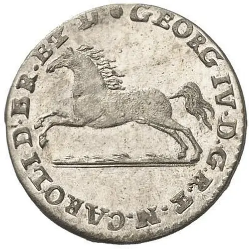 | Obverse lettering | GEORG IV . D . G . R . T . N . CAROLDI . BR . ET L |