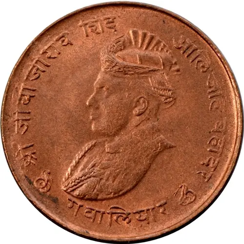 | Obverse description | Bust of Jivaji Rao left Legend in Devnagari surrounds |