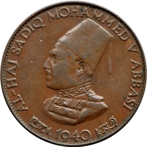 | Obverse lettering | AL-HAJ SADIQ MOHAMMED V ABBASI 1940 |