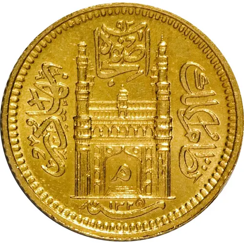 | Obverse description | Charminar mosque, with symbol in doorway, inscriptions at top and sides, date below. |
