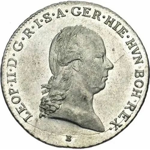 | Opis awersu | Laureate portrait to the right. Legend around for `Leopoldus II Dei Gratia Romanorum Imperator Semper Augustus Germaniae Hierosolymae Hungariae Bohemiaeque Rex`, mintmark under the bust. |