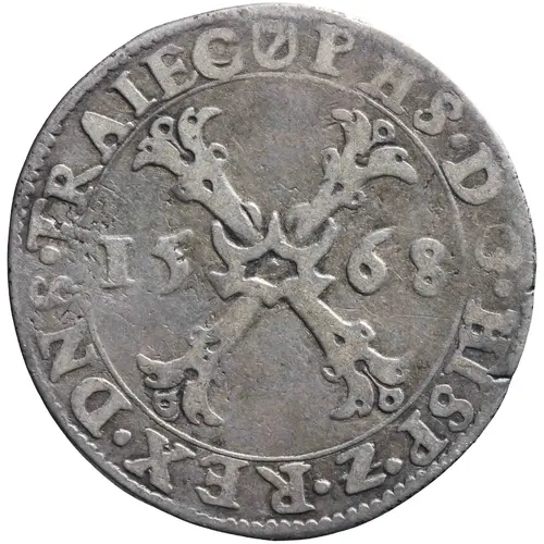 | نوشتههای روی سکه | PHS · D · G · HISP · Z · REX · DNS · TRAIEC 15 68 (Translation: Philip, by God`sGrace King of the Spaniards, Lord of Utrecht) |