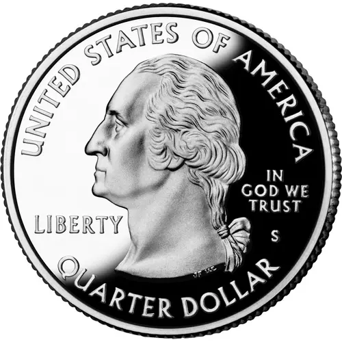 | Obverse description | The portrait in left profile of George Washington, the first President of the United States from 1789 to 1797, is accompanied with the motto `IN GOD WE TRUST` and the lettering `LIBERTY` surrounded with the denomination and the inscription `UNITED STATES OF AMERICA` |