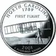 | Reverse description | A reproduction of a photograph taken on December 17, 1903, by John T. Daniels showing the first flight of the Wright brothers is surrounded with the legend `FIRST FLIGHT`, the state`s name (`NORTH CAROLINA`), the date of its admission into Union (`1789`) and the motto `E PLURIBUS UNUM` |