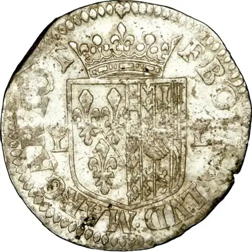 | Obverse description | Shield, stamped with a fleur-de-lys crown, bearing the arms of François de Bourbon and Louise-Marguerite de Lorraine, and flanked by two crowned Ls; legend starting at 1 o`clock. |