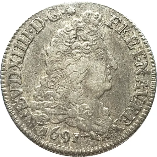 | Obverse description | Bust of Louis XIV on the right, draped and cuirassed, with the large wig. below, the vintage. Legend starting at 19 h. |