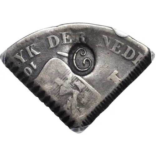 | Mô tả mặt trước | Countermarked oval circle with `C` on 1/4 of a Dutch 1 Gulden piece, which displays a lion in a crowned shield. |