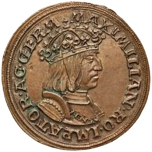 Artistry: The design of this 1/4 Guldiner pattern, crafted by skilled Hall mint die-cutters, reflects the stylistic transition from late Gothic to early Renaissance art. Maximilian I, a renowned patron, ensured his coinage blended traditional heraldic elements—like the imperial eagle and Habsburg shields—with emerging Renaissance naturalism, potentially featuring a stylized imperial bust or prominent saint. As a pattern, it aimed to showcase the proposed design with exceptional clarity, demonstrating advanced engraving.