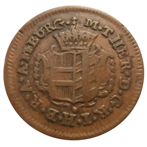| 正面描述 | Crowned arms, legend (start 1h) for `Maria Theresia Dei Gratia Romanorum Imperatrix Hungariae Bohemiae Regina Archiducisa Austriae Margravius Burgoviae` |