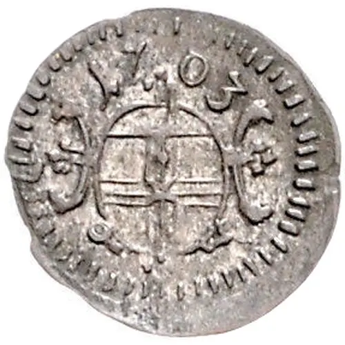 | Obverse description | Oval city arms in cartouche, date above. |