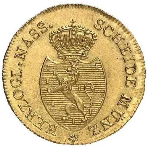| Obverse lettering | HERZOGL. NASS. SCHEIDE MÜNZ |