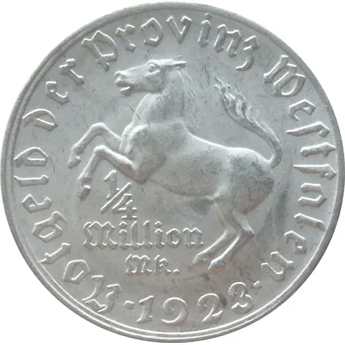 | Obverse lettering | Notgeld der Provinz Westfalen 1/4 Million Mk. ▪ 1923 ▪ |