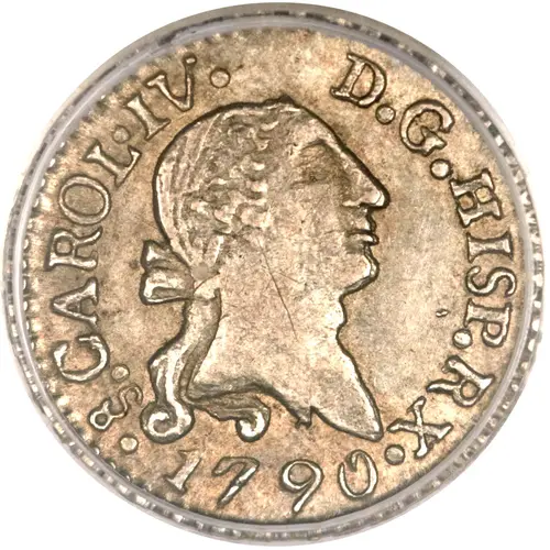 • S̊ • CAROL • IV • D • G • HISP • RX • 1790 (Translation: Carlos IV, by the grace of God, King of Spain) |