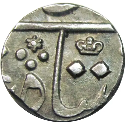 | Obverse description | Legend in Persian (mostly off flan): Sikka Mubarak Badshah ghazi Shah Alam |