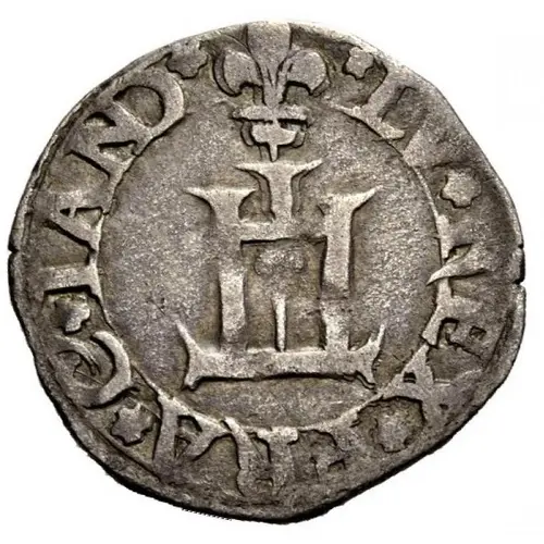 | Obverse description | Gateway topped with fleur-de-lis, within thin solid circle underlining legend. |