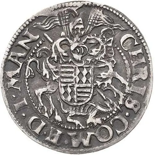 | Obverse description | Helmeted shield of old Mansfeld arms superimposed on Saint George on horseback slaying dragon |