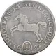 | Reverse description | Horse leaping left, 1/4 in oval divides date below. |