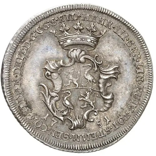 | Obverse lettering | HENR III SEN LIN RUTH TOT STEMM SEN COM ET DOM DEPL D G C G S ETL 1751 |