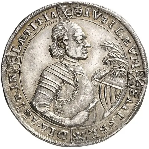 Obverse lettering IVBILEVM SAALFELDIA AGIT IN LA TITIA
