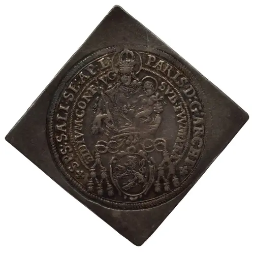 | Obverse description | Crowned Madonna with child above the arms of the Archbishop in an oval frame. In the circle, the first verse of a prayer to Mary `Sub tuum praesidium confugimus`. Legend around (start 1h). |
