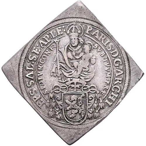 | نوشتههای روی سکه | PARIS · D : G : ARCHI EPS · SAL : SE : AP : LE : SVB · TVVM · PRÆ SIDIVM · CONF : (Translation: Latin, unabridged: Paris, Dei Gratia Archiepiscopus Salisburgensis Sedis Apostolicae Legatus Sub tuum praesidium confugimus) |