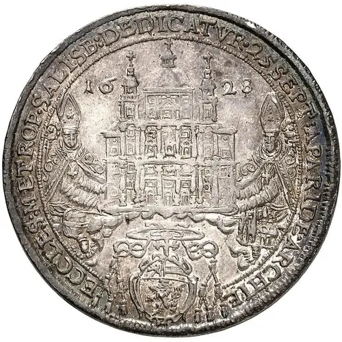 | Legenda awersu | ECCLES : METROP : SALISB • DEDICATVR 25 SEPT • APARIDE • ARCHIE 1628 (Translation: Consecration of the Metropolitan Church of Salzburg by the Archbishop Paris on September 25th) |