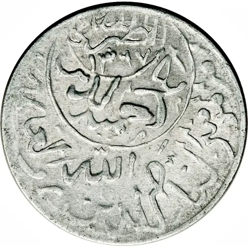 | Reverse lettering | ضرب بصنعا الله لا اله الا سنة ١٣٧٦ ربع عشر (Translation: Struck in Sana`a God No God But [God] Year 1376 Quarter of Ten) |
