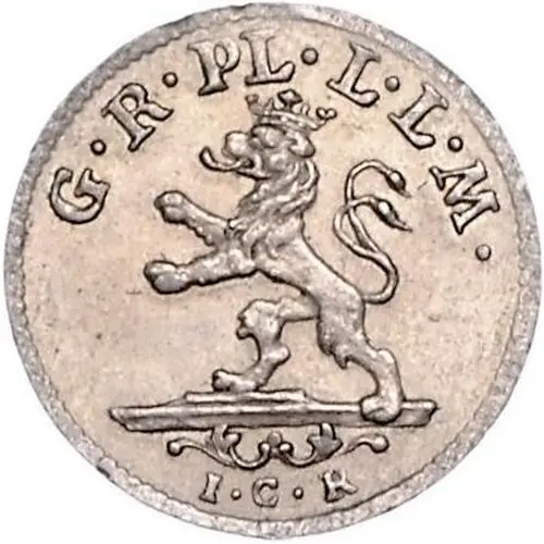 | Obverse description | Lion left on pedestal, mint official`s initials below. |