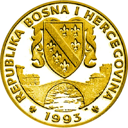 | Obverse description | National arms above bridge, date below |