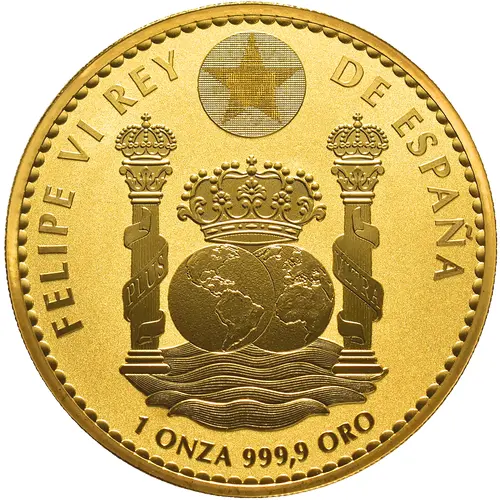 | Obverse lettering | FELIPE VI REY DE ESPAÑA PLUS VLTRA 1 ONZA 999,9 ORO (Translation: Felipe VI King of Spain Further beyond 1 Ounce 999,9 Gold) |