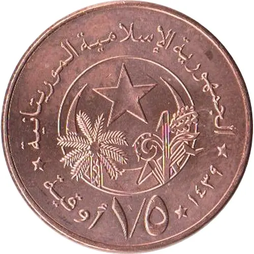 (Translation: The Islamic Republic of Mauritania 1439 1/5 Ouguiya)