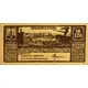 Thick roug orange paper.Dark brown printing and text.Central box with two knights and the city in the background.Value and coat of arms in rectangular boxes on both sides. |