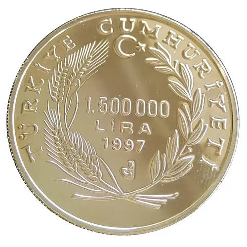 | Obverse lettering | TURKIYE CUMHURIYETI 1.500 000 LIRA 1997 Td (Translation: Republic of Turkey) |