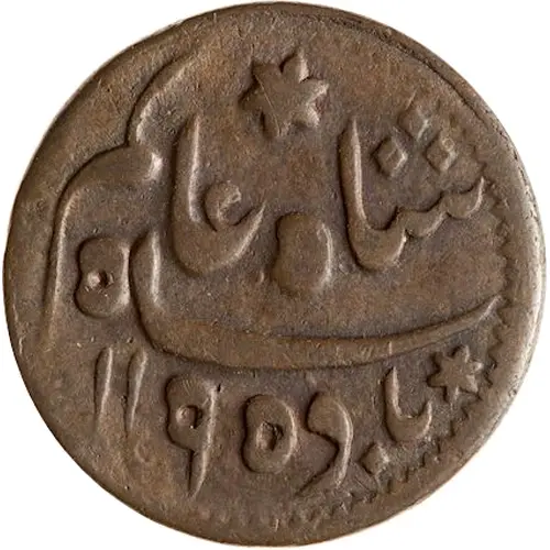 | Obverse description | Legend in Persian:Shah Alam Badshah (AH)1195, all within a raised, toothed rim |