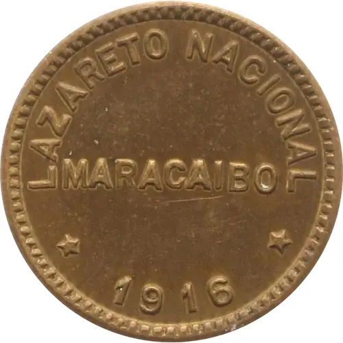 | Obverse lettering | LAZARETO NACIONAL MARACAIBO ★ 1916 ★ (Translation: National leprosarium Maracaibo 1916) |