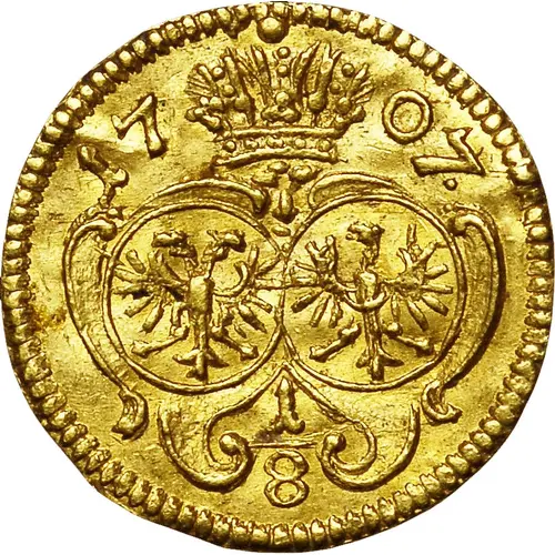 | Obverse description | Large crown divides date above two shields ornamentation; value below. |
