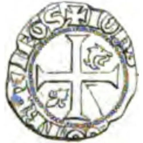 | Obverse description | Cross with dolphin and lily in opposite angles. |