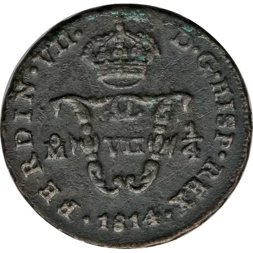| Obverse lettering | FERDIN • VII • D • G • HISP • REX • 1814 • Mo VII 1/4 |