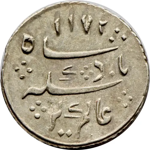 | Obverse description | Legend in Persian: 1172 Sikka Badshah Alamgir All within a plain circle |