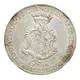Mining scene wherein the mountain cut-away shows 2 people manning a winch and 1 person tending a bucket prior to it being lifted out of the mountain. Three religious symbols are stamped into the mountain. Lettering follows the round edge of the coin with the denomination and mintmark below the mountain. |