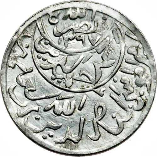 | Reverse lettering | ضرب بصنعا الله لا اله الا سنة ١٣٧٦ ثمن عشر |
