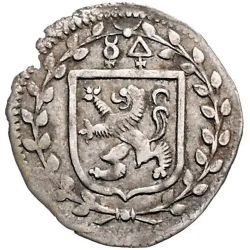 | Obverse description | Shield of Sayn arms, mintmaster`s symbols above, all in palm wreath |