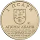 | Obverse description | In the upper central part, on the smooth field - the relief picture of the State Emblem of the Republic of Abkhazia, under it - the inscription in Abkhaz “Аҧсны Абанк (The Bank of Abkhazia). The semicircular inscriptions above the State Emblem indicate the denomination of the coin. In the lower part of the coin, on the matted field and raised small print inscriptions of five lines “Аҧсны Абанк” and the year of mintage `2016`. |