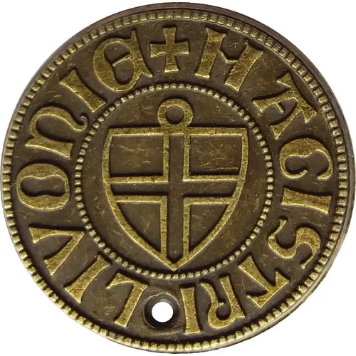 | Obverse description | Hollow cross in shield surrounded by legend with symbol at bottom. |