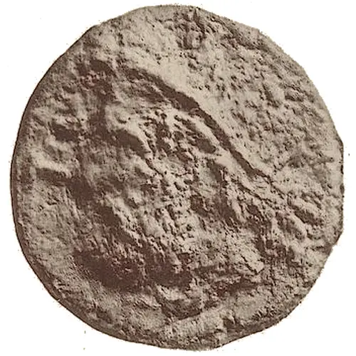 | Beschrijving voorzijde | Bearded male (possibly Genius) facing left with letters in front. |