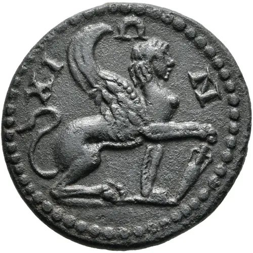 | Obverse description | Sphinx seated, right, raising forepaw over amphora. |