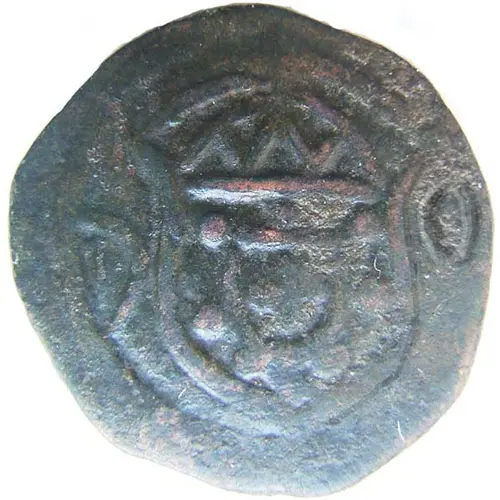 The coin was also know as `4 Duganis`, a local coin, not Portuguese. Some coins have a `4` under the cross. Coat of Arms divide mint letter |