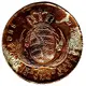 | Reverse description | Crowned oval coat of arms with palm wreath and mint mark below, two lines of legend surrounding with date |